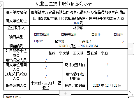 上一篇:四川锦生元食品有限公司锦生元调味料及食品添加剂生产项目职业病危害预评价
