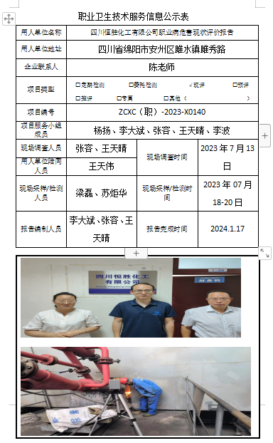 下一篇:四川国木再生资源利用有限公司职业病危害现状评价