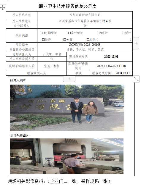 上一篇:四川华运天晨新材料技术有限公司职业病危害现状评价