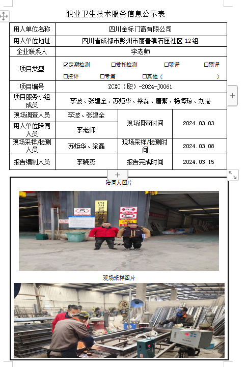 下一篇:四川匠领门业有限公司职业病危害因素定期检测