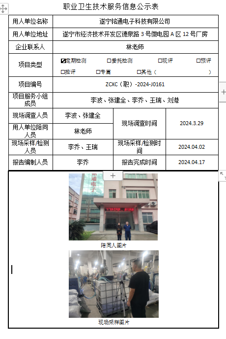 下一篇:四川腾弘精密机械有限公司职业病危害因素定期检测