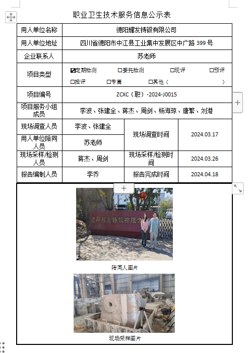 下一篇:成都顶新包装有限公司职业病危害因素定期检测