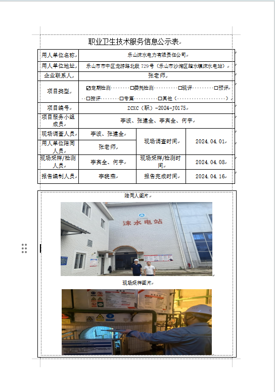 下一篇:乐山大沫水电有限责任公司大坪电站职业病危害因素定期检测