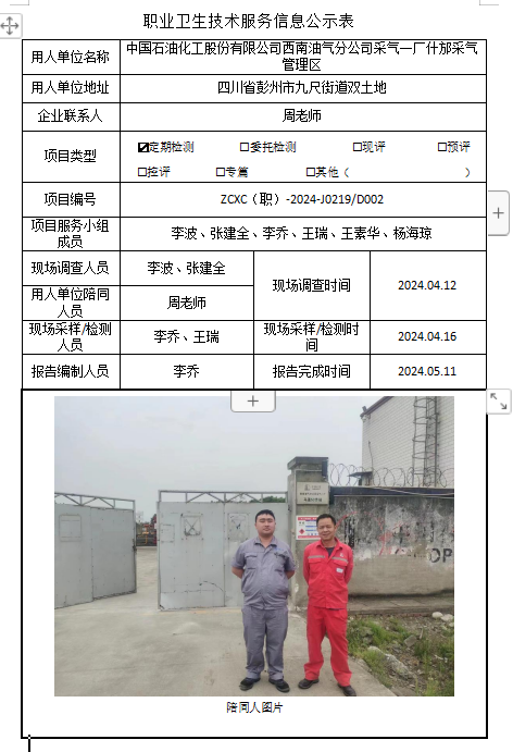 下一篇:兴文县毓秀加油站职业病危害因素定期检测