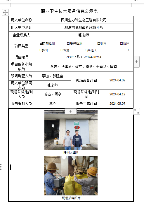 下一篇:四川骏丰新材料科技有限公司职业病危害因素定期检测