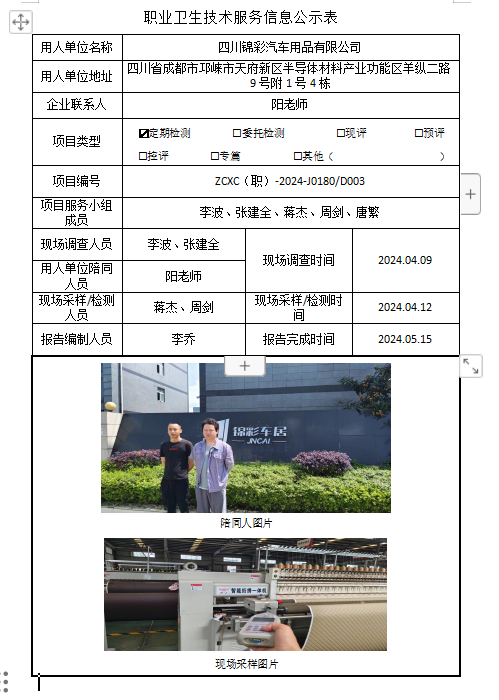 上一篇:四川骏丰新材料科技有限公司职业病危害因素定期检测