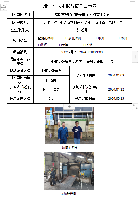 下一篇:宜宾市南溪区科兴机械厂职业病危害因素定期检测