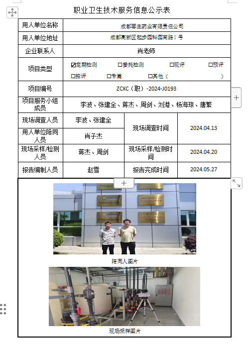 上一篇:成都赛乐化新机电有限公司职业病危害因素定期检测
