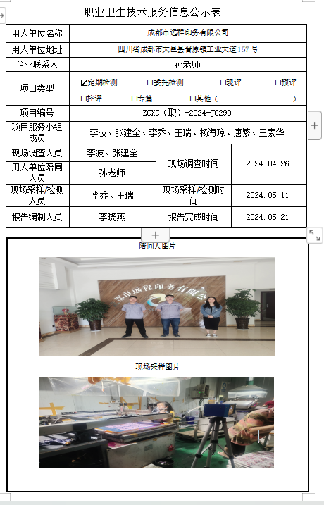 下一篇:成都市渔樵食品有限公司职业病危害因素定期检测