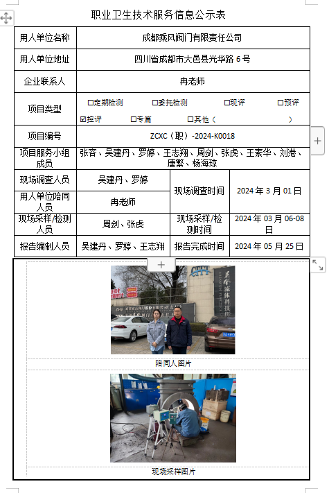 下一篇:成都成高阀门股份有限公司阀门生产线技术改造项目职业病危害控制效果评价