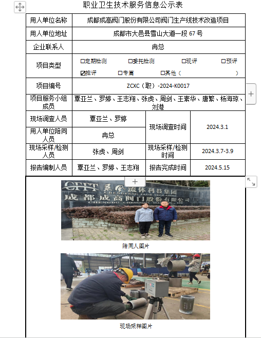 上一篇:成都乘风阀门有限责任公司职业病危害控制效果评价