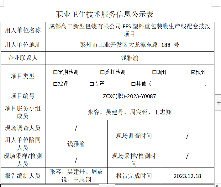上一篇:成都川康铸锻有限责任公司职业病危害现状评价
