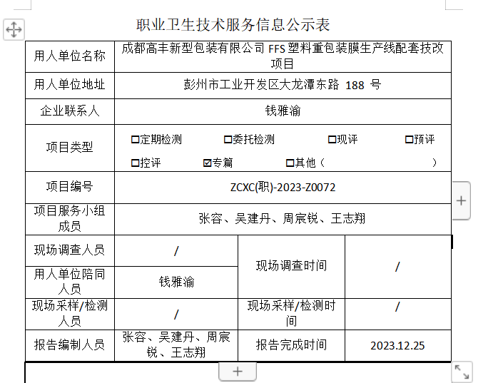 上一篇:成都高丰新型包装有限公司FFS塑料重包装膜生产线配套技改项目职业病危害预评价