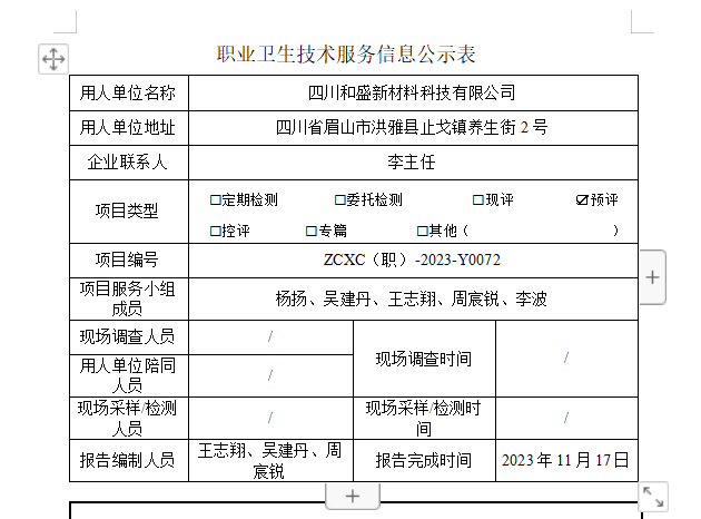 下一篇:西昌市和城工贸有限公司职业病危害控制效果评价