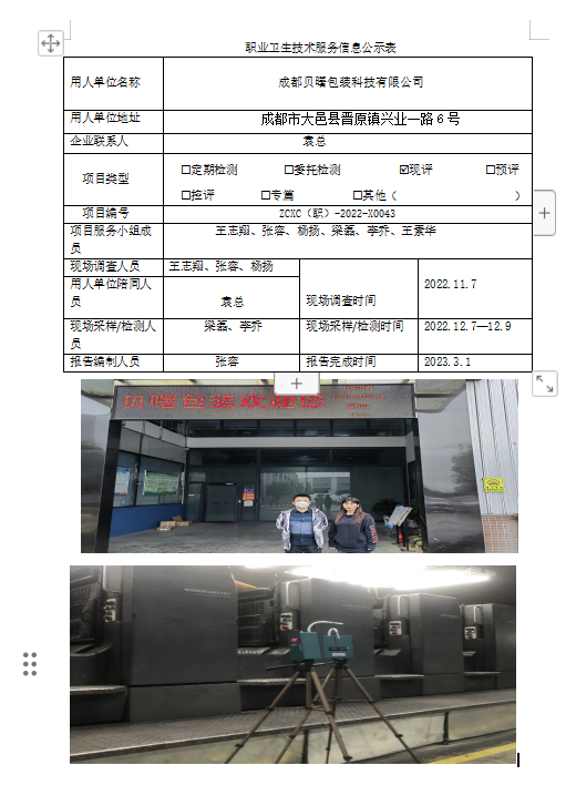 下一篇:成都正本源生化科技有限公司职业病危害现状评价