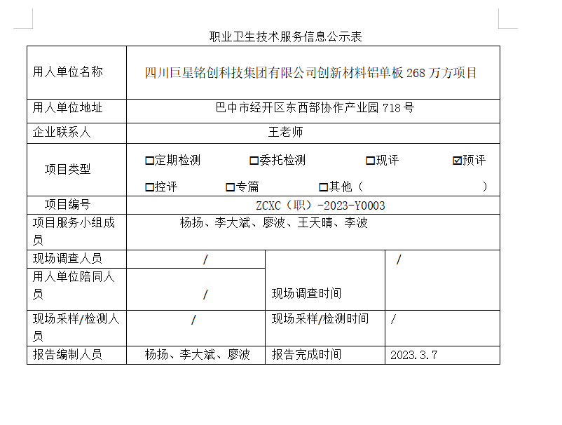 下一篇:绵阳兴隆科技发展有限公司职业病危害现状评价