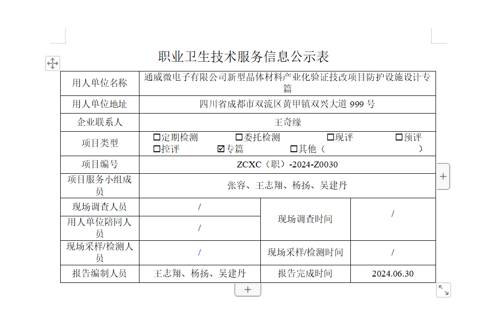 下一篇:通威微电子有限公司新型晶体材料产业化验证技改项目职业病危害预评价