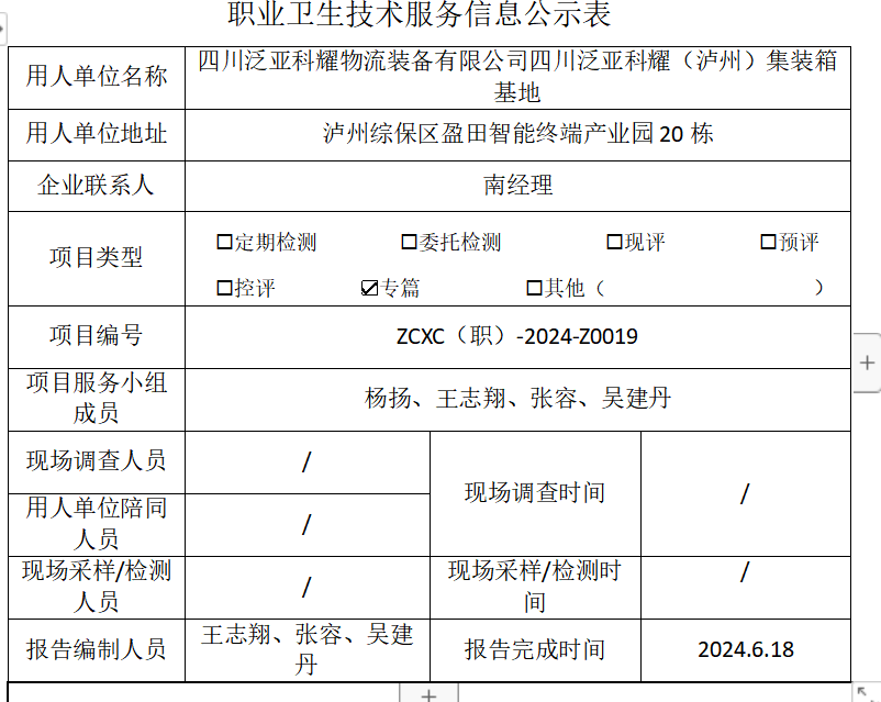 上一篇:四川泛亚科耀物流装备有限公司四川泛亚科耀(泸州)集装箱基地职业病危害预评价