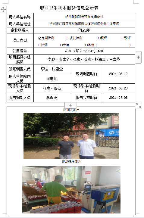 下一篇:彭州市桂花镇上庭瓦业有限公司职业病危害因素定期检测