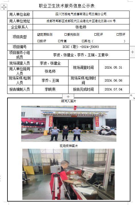 下一篇:四川省苗溪有限责任公司职业病危害因素定期检测