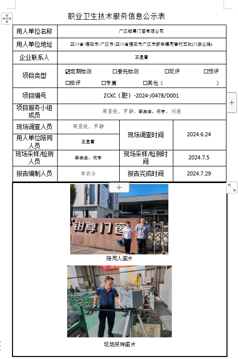 下一篇:华蓥市跃川机械有限公司职业病危害因素定期检测