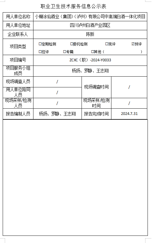 上一篇:小糊涂仙酒业(集团)泸州合江有限公司技改项目职业病危害预评价