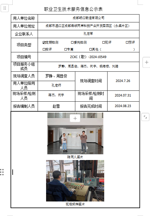 下一篇:成都金汇丰能源有限公司职业病危害因素定期检测