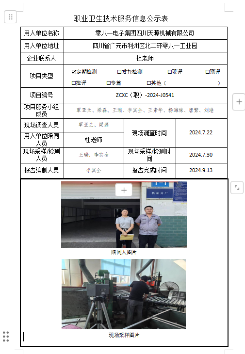 下一篇:广安宏源化工有限公司职业病危害因素定期检测