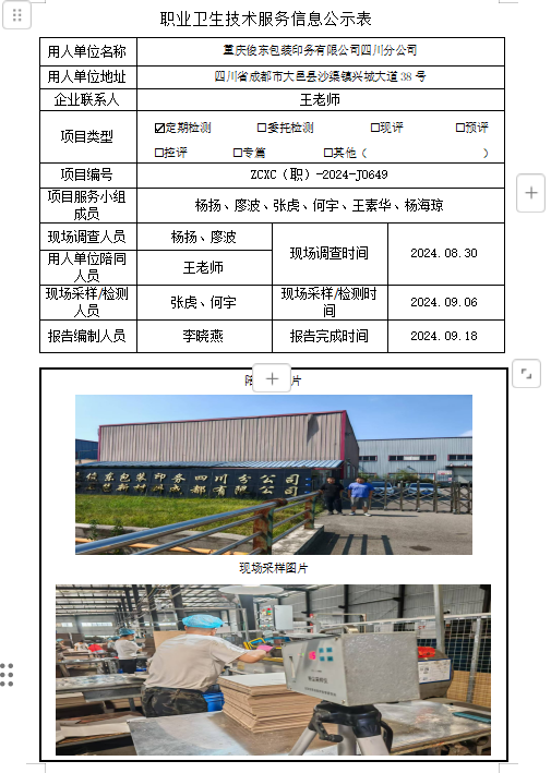下一篇:成都泰格尔航天航空科技股份有限公司职业病危害因素定期检测