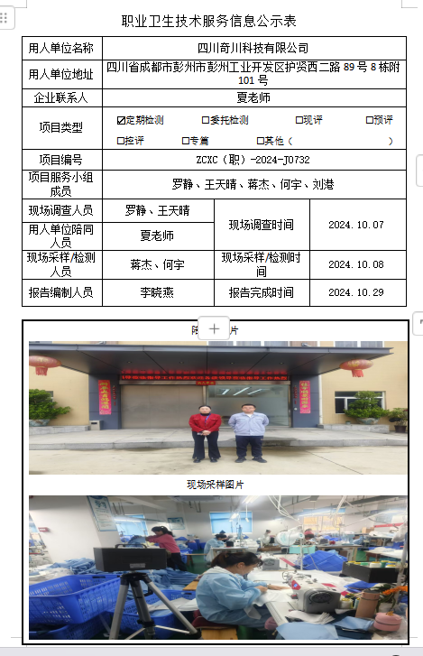 下一篇:成都宇展纸制品有限公司职业病危害因素定期检测