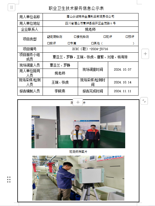 下一篇:成都市金亿家具有限公司职业病危害因素定期检测