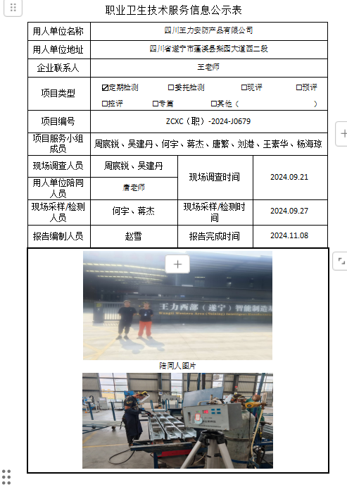 下一篇:四川省彭州市天彭酒业有限公司职业病危害因素定期检测
