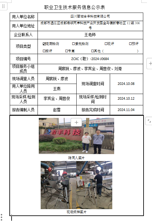 下一篇:邛崃市高埂康华实木门厂职业病危害因素定期检测