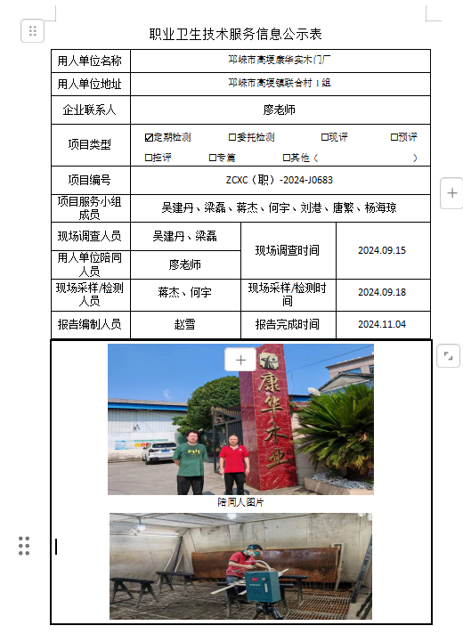 下一篇:成都金度家具有限公司职业病危害因素定期检测