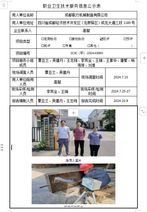 下一篇:成都钏呈塑汽车零部件有限公司职业病危害因素定期检测