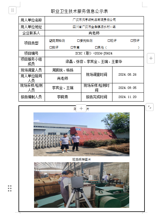 下一篇:成都洋湃科技有限公司职业病危害因素定期检测