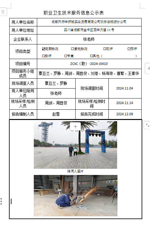 上一篇:成都洋湃科技有限公司职业病危害因素定期检测