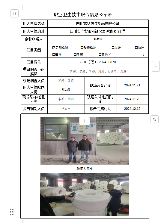 下一篇:四川沁一坊家具有限公司职业病危害因素定期检测