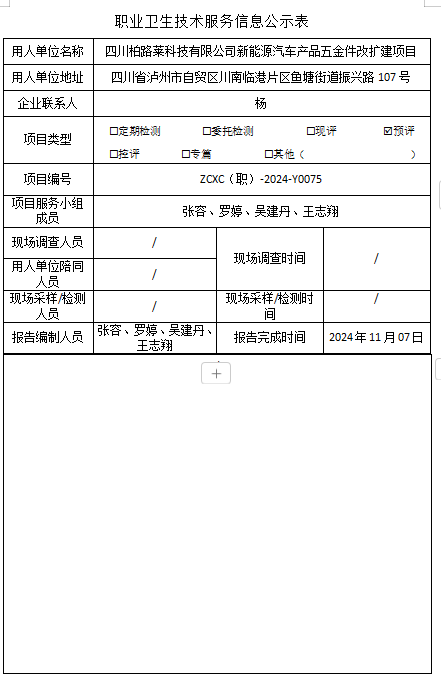 下一篇:四川柏路莱科技有限公司新能源汽车产品五金件改扩建项目职业病防护设施设计专篇