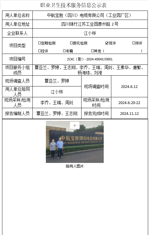 下一篇:中航宝胜(四川)电缆有限公司(什地厂区)职业病危害现状评价