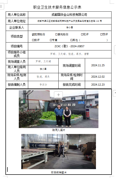 下一篇:成都大建装饰建材商贸有限公司职业病危害因素定期检测