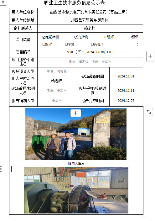 下一篇:越西县星光电力开发有限责任公司(铁马一级)职业病危害因素定期检测