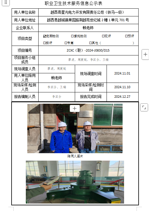 上一篇:越西县洋源水电开发有限责任公司(苏姑二级)职业病危害因素定期检测