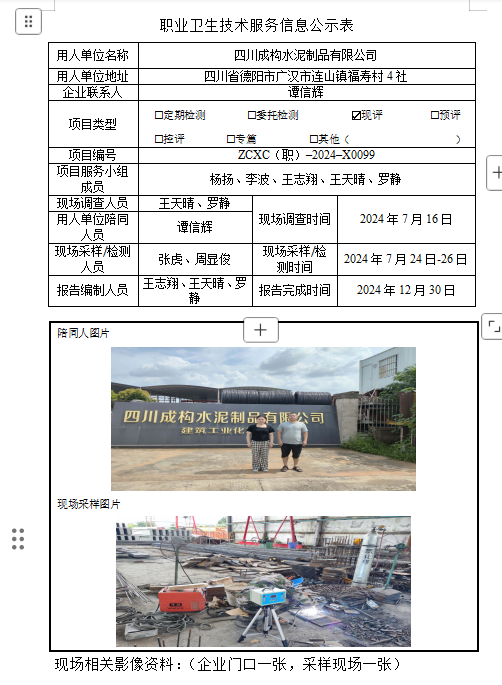 上一篇:绵阳优丰磊德新型建材有限公司装配式绿色轻质墙体材料配套设施项目职业病危害控制效果评价