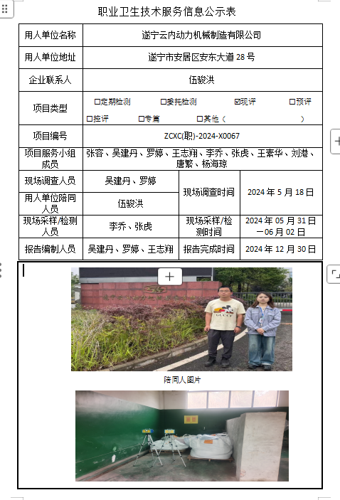 下一篇:越西县星光电力开发有限责任公司团结电站职业病危害现状评价