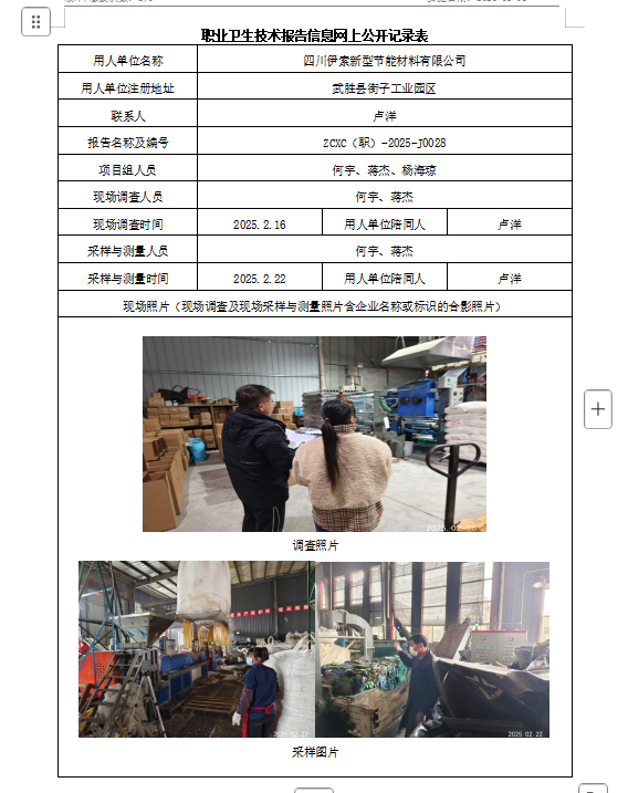 下一篇:四川亿森塑料科技有限公司职业病危害因素定期检测