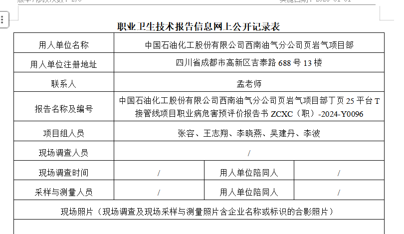 下一篇:中国石油化工股份有限公司西南油气分公司页岩气项目部丁页16-丁页3集输管道项目职业病危害预评价