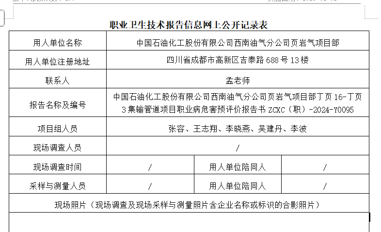 上一篇:中国石油化工股份有限公司西南油气分公司页岩气项目部丁页25平台T接管线项目职业病危害预评价