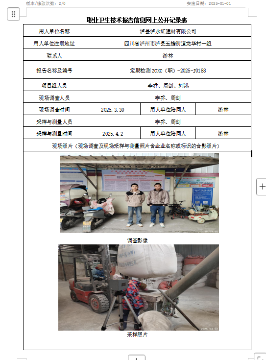 下一篇:泸县云龙华勇石材厂职业病危害因素定期检测