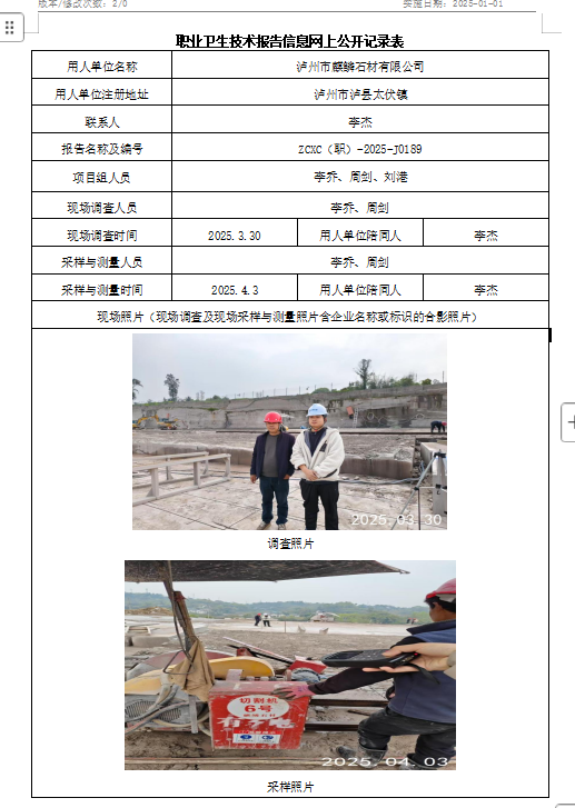 上一篇:泸州地丰石材有限公司职业病危害因素定期检测